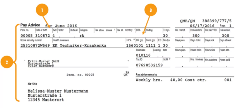 Voilà donc, en gros, ce qu’est la fiche de paie allemande. Nous avons utilisé une fiche de paie allemande type pour vous présenter les principaux éléments. Toutes les fiches de paie se ressemblent, mais la situation personnelle (comme la situation familiale ou la classe d’imposition) peut faire une grande différence.