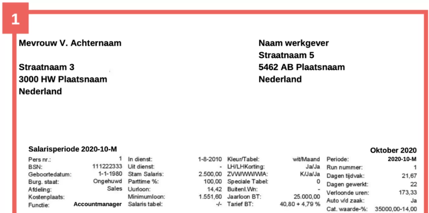 Pour simplifier les choses, nous avons divisé la fiche de paie néerlandaise en trois parties. Nous vous expliquerons quelles informations vous pouvez trouver dans chaque partie.